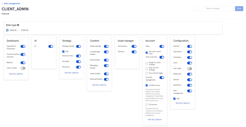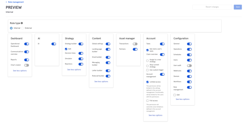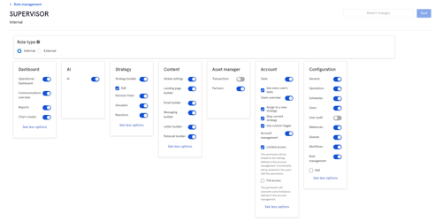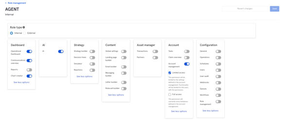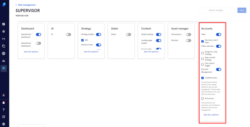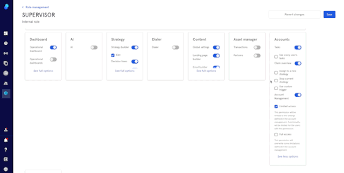 Let's say you want your agents to see only the Account Manager, or your supervisors to be able to edit the strategy. You can use the Role Management feature to achieve this type of configuration.