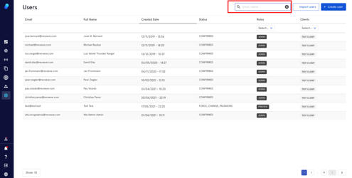 You can search for the email address or name of a user to quickly view that user’s information. To do this, begin typing in the search bar and the table will automatically show the relevant email address or name.