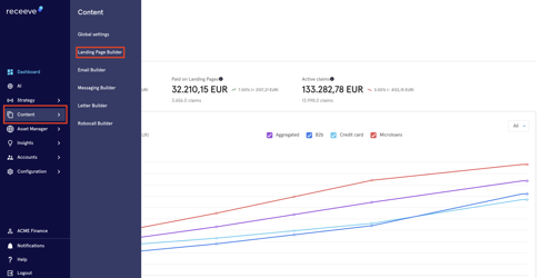 To start, click 'Content' on the main menu and click 'Landing page builder'.