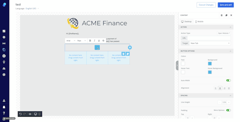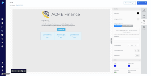 3. To replace the static text with dynamic placeholders mark the text you want to replace, click on merge text and select the tag that represents the data field you want to insert.