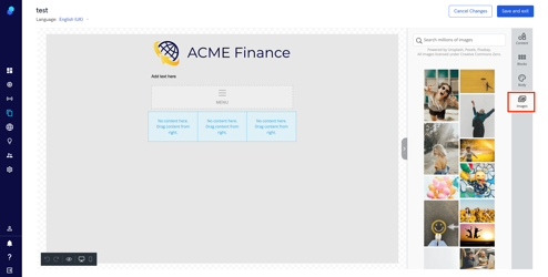 - To upload an image, click on the image content block and: