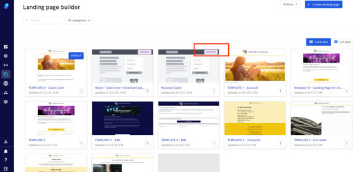 - Select the landing pages by clicking on the checkbox you'll find on the top left of each thumbnail.