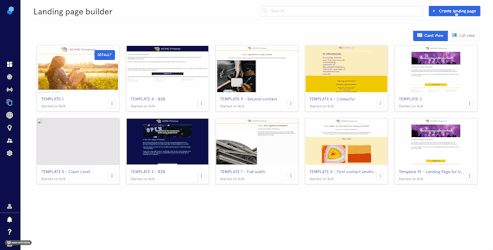 - Click on the 'create landing page' button on the top right. A modal will open up.
