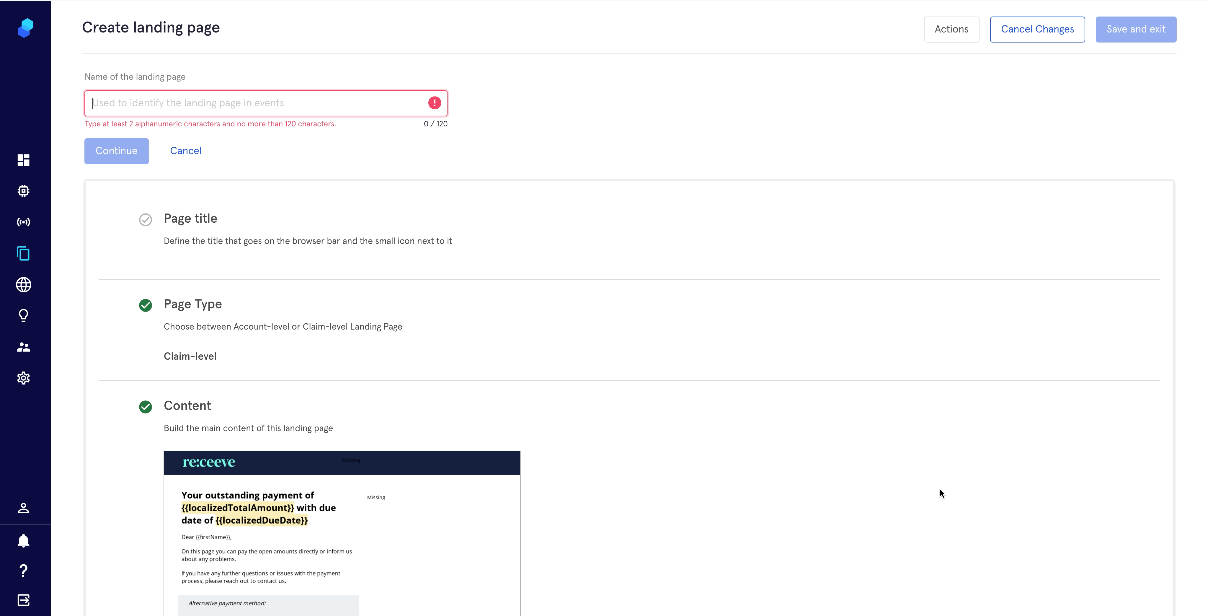 Step-by-step instructions on how to create a landing page using the receeve platform