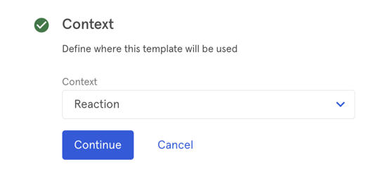 a) The configuration screen of the features listed above will only show templates created within the context. Eg: if you're in Reactions, only the messages created within the context 'reactions' will be available.