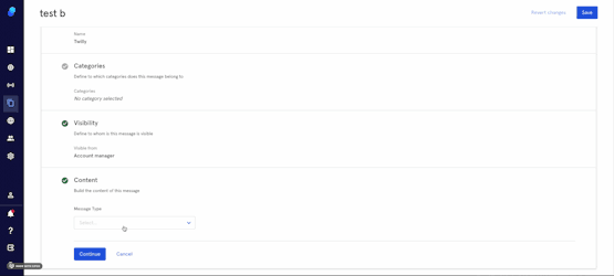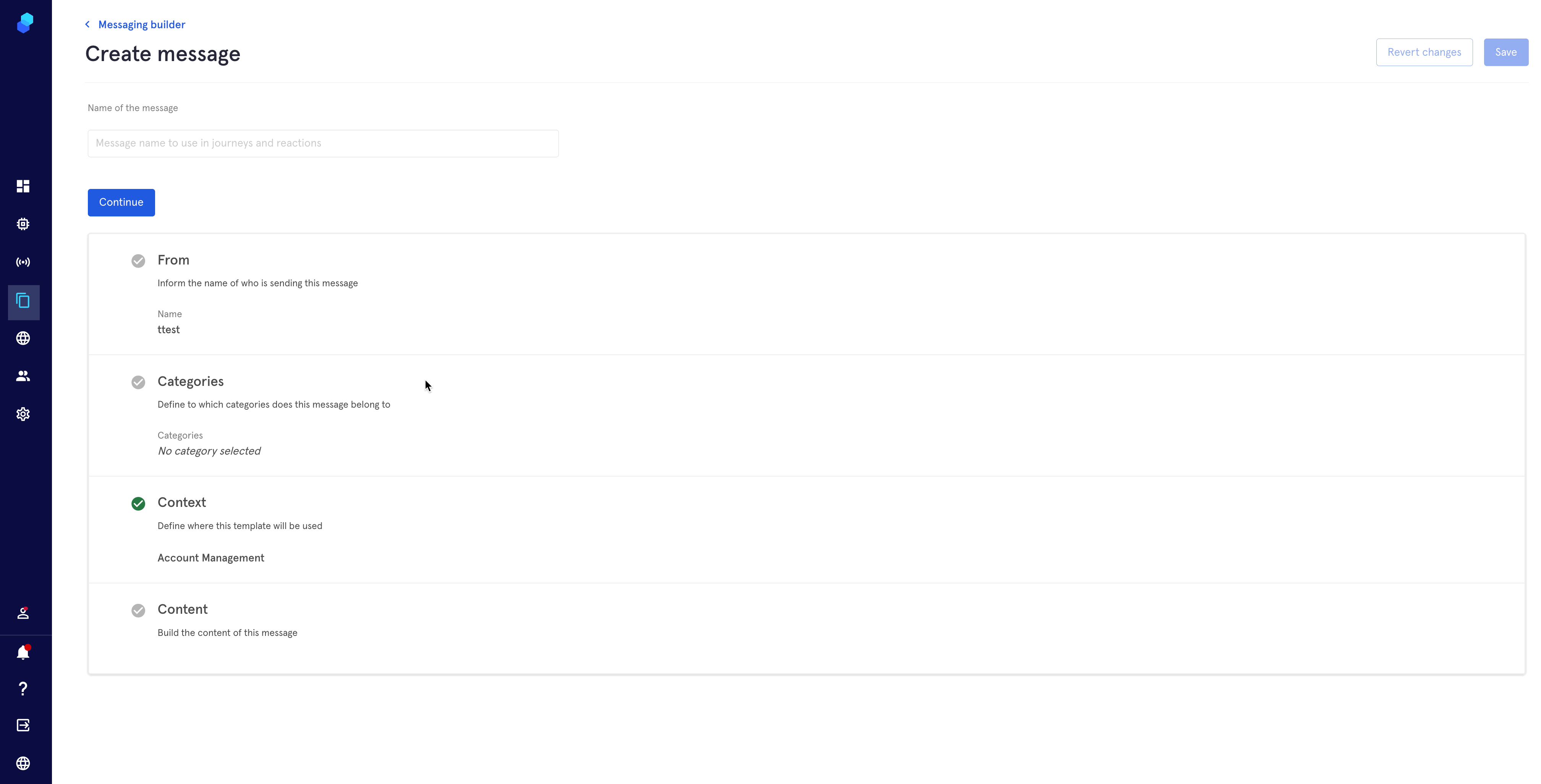 - Context: Choose a specific pre-defined context for your message. You can choose between the Account Manager, the Strategy Builder or Reactions. Please note that: