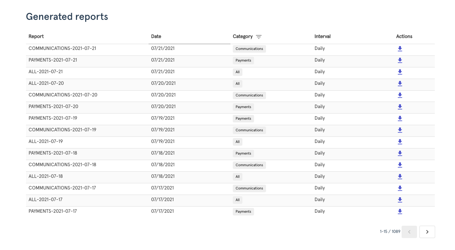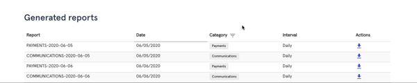 In the Reports module, you can access daily Communication and Payments reports generated automatically from the system.