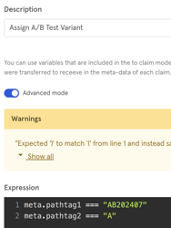 meta.pathtag2 = "A" // <-- Assigned Variant