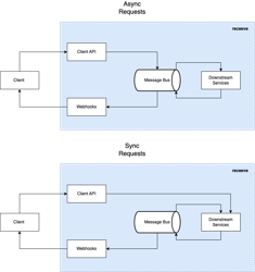 - Asynchronous Requests: The client sends a request, and the platform processes it asynchronously. It is important to note that before adding the request to the Message Bus, we apply some validations to ensure the request is valid. If the request is not valid, the client will receive an error in the response immediately without creating any side-effect. If the request is valid, the system will send the request to the Message Bus and return immediately, without waiting for the response from Downstream Services.