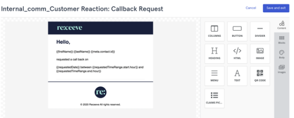 Note: If the email is used in the Reaction to a debtorCallback.request, the timeRange context is injected dynamically as placeholders and it is possible to use them. Why are the specific placeholders not in the List of placeholders: When we edit an email, we can only know the generic placeholders assuming that we have the claim context but especially in reactions, we are injecting the payload of the event as additional placeholders, but because we are not binding that concrete email template to that specific reaction, it is impossible to know which other placeholders are available. That means if we want to have those in the list we would need to have that binding when creating the template.