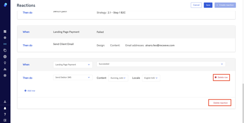 - Delete the reaction by clicking on the 'Delete reaction' button.