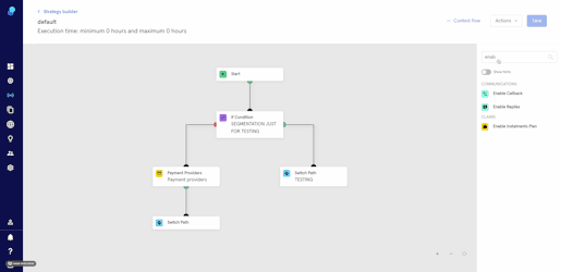 - Drag and drop the 'Enable replies' step from the step library into your strategy.