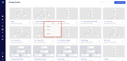 To start creating a Strategy, go to 'Strategy' in the main menu and then click on 'Strategy Builder'.