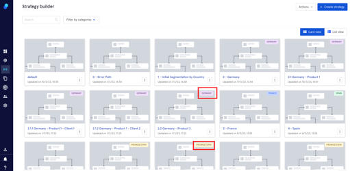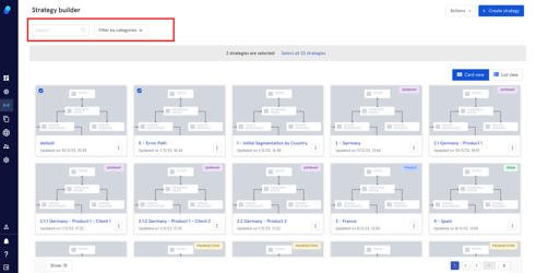2. Filter by categories. Please note that the strategies assigned to a category will have a tag on display.
